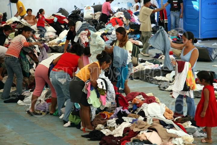 VILLAHERMOSA, TABASCO, 20DICIEMBRE2007.- Cientos de pobladores tabasqueños que son damnificados acuden a los diferentes centros de acopio en donde realizan largas colas para esperar su turno y así poder escoger mudas de ropa que fueron donadas voluntariamente. FOTO: MARCO POLO GUZMÁN HERNÁNDEZ/CUARTOSCURO.COM