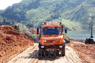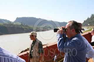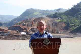 OSTUACAN, CHIAPAS., 20DICIEMBRE2007.- Felipe Calderón Hinojosa, Presidente de México, durante la gira de trabajo que realizó por el boquete recien hecho que permite el libre paso del cauce del río Grijalba y que hace más de 40 días fue obstruido por el deslave de un cerro. FOTO: ALFREDO GUERRERO/CUARTOSCURO.COM
