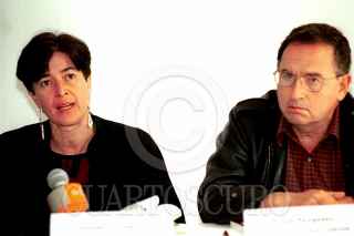 Dolores González y Rafael Reygadas representantes de organismos no gubernamentales en conferencia de prensa hablaron sobre la Caravana Zapatista y la ley de la Cocopa. FOTO: Victoria Valtierra/CUARTOSCURO.COM