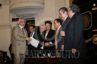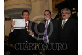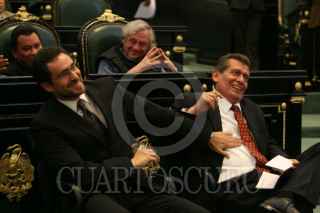 MÉXICO D.F. 20DICIEMBRE2007.-Los ligisladores María del Carmen Segura y Jorge Shafino, dialogan durante ceremonia de la Medalla al Merito en Artes y Ciencias que otorga la Asamblea Legislativa. FOTO: GUILLERMO PEREA/CUARTOSCURO.COM