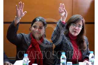 MÉXICO D.F., 03ENERO2008.- La senadora del PAN Adriana Gonzalez y la senadora del PRD Yeidckol Polevnsky Gurwitz, integrantes de la Segunda Comisión de Relaciones Exteriores, Defensa Nacional y Seguridad Pública, que se instaló hoy como parte de los trabajos de la Comisión Permanente. FOTO: ISRAEL VERA/CUARTOSCURO.COM