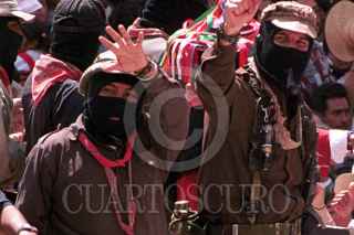 Tumultuosa bienvenida se le dio al subcomandante Marcos y la comandancia del EZLN a su llegada al Zocalo de la ciudad de Mexico, ultimo punto de la marcha zapatista. Foto: Christian Palma/CUARTOSCURO.COM