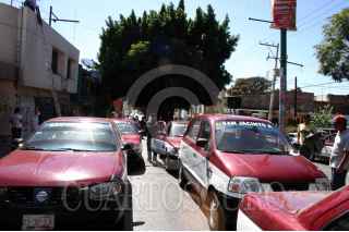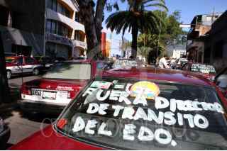 OAXACA, OAXACA, 03ENERO2008.- Integrantes y taxistas concesionados bloquearon por unas horas la avenida principal Simbolos Patrios frente a la SEPROCI en donde demandaron que se respeten los acuerdos y la concesión y no se deje trabajar a taxis piratas. FOTO: MAX NUÑEZ/CUARTOSCURO.COM