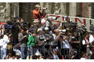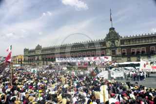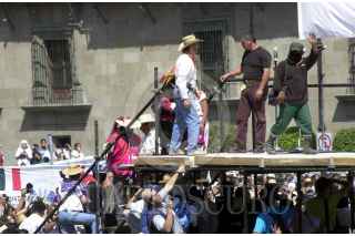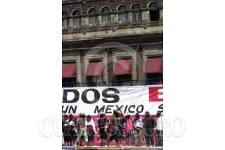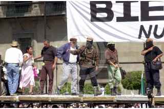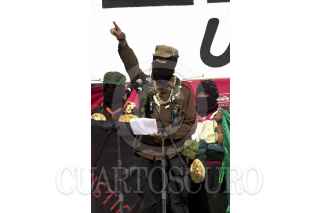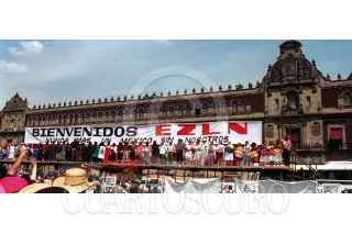 Tumultuosa bienvenida se le dio al subcomandante Marcos y la comandancia del EZLN a su llegada al Zocalo de la ciudad de Mexico, ultimo punto de la marcha zapatista. Foto: David Bolaños/CUARTOSCURO.COM
