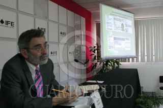 MÉXICO, D.F., 08ENERO2008.- El director ejecutivo del Registro Federal de Electores, Alberto Alonso y Coria, ofreció conferencia de prensa para informar informó que al cierre de 2007 un total de 75 millones 82 mil 153 ciudadanos se habían inscrito al Padrón Electoral, además mostró el nuevo formato de credencial para votar. FOTO: CUARTOSCURO.COM