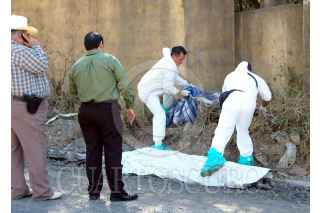 SANTIAGO, NUEVO LEON 08ENERO2007.- Un hombre fue encontrado hoy aparentemente ejecutado en la Carretera Nacional, en el municipio de Santiago. El cuerpo se encuentrò con el rostro cubierto con cinta color gris y envuelto en dos cobertores. Se investiga si tiene relación con la desaparición de un oficial de tránsito de Santa Catarina, que fue aparentemente levantado anoche por un comando armado en en el municipio de San Pedro Garza Garcia. FOTO: CUARTOSCURO.COM