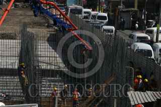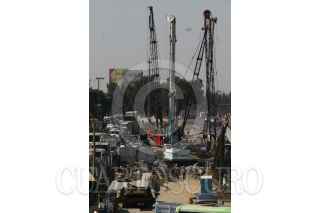 LOS REYES LA PAZ, EDOMEX.., 09ENERO2008.- Continuan las obras de la fase dos del puente de "La Concordia", dicha obra ocaciona caos vial en el acceso del paradero de Santa Martha. FOTO: SAÚL LÓPEZ/CUARTOSCURO.COM