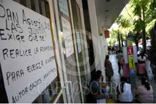 OAXACA, OAXACA. 09ENERO2007.- Habitantes de san Agustín de las juntas, bloquearon este medio día las instalaciones del IEE (instituto estatal electoral) donde exigen el respeto a sus usos y costumbres para definir a sus autoridades municipales. FOTO: MAX NUÑEZ/CUARTOSCURO.COM