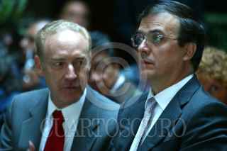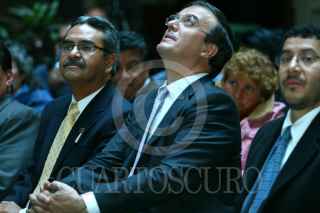 MÉXICO, D.F. 10ENERO2007.- Marcelo Ebrard, jefe de gobierno capitalino presentó su programa emergente en defensa de la economía popular en la sede del GDF. Benito Mirón Lince, secretario del trabajo local estuvo presente. FOTO: PAOLA HIDALGO/CUARTOSCURO.COM