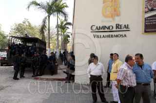 VILLAHERMOSA, TABASCO, 10ENERO2008.- Elementos de la PFP y Ejercito Mexicano acordonaron los alrededores del hotel Camino Real para impedir manifestaciones por la llegada del presidente Felipe Calderon, lo cual provoco incomodidades a los clientes de la tienda departamental Livepool. Asi mismo el Estado Mayor Presidencial no permitio el acceso al evento a medios locales aun asi portando sus respectivas acreditaciones. FOTO: MARCO POLO GUZMÁN HERNÁNDEZ/CUARTOSCURO.COM