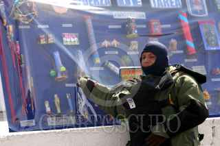 MÉXICO D.F., 10ENERO2008.- Elementos de la SSP-DF realizaron la destrucción de más de una tonelada de cohetes decomisados a los vendedores durante el mes de diciembre, después de explicar los daños que pueden causar les prendieron fuego en la base piraña en Tlahuac. FOTO: PEDRO MARRUFO/CUARTOSCURO.COM