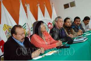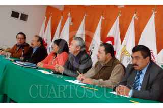 MÉXICO D.F., 11ENERO2008.- Margarito Montes Parra de la UGOCP, Guadalupe Martínez Cruz de la CONSUCC, Raul Pérez Bedolla de la ALCANO, Humberto Serrano Novelo de la CAM y Euam Martínez de la UGOCM durante una conferencia de prensa de los integrantes del Congreso Agrario Permanente. FOTO: RODOLFO ANGULO/CUARTOSCURO.COM