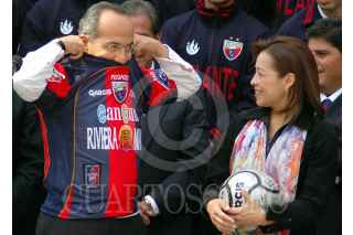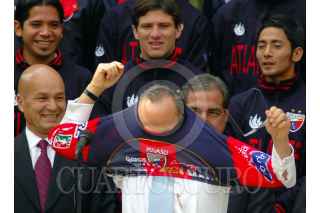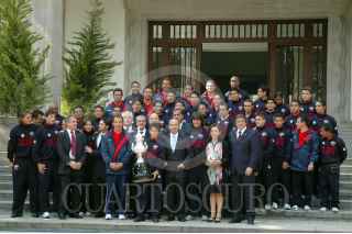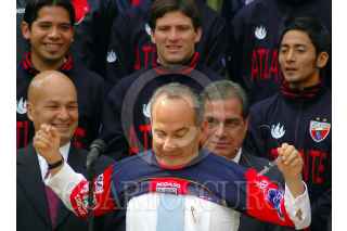 MÉXICO D.F., 11ENERO2008.- El presidente Felipe Calderón se toma la fotografía oficial con jugadores y directivos del club Atlante que visitaron la residencia oficial de Los Pinos. FOTO: RODOLFO ANGULO/CUARTOSCURO.COM