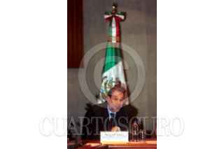 Javier Solana representante de España ante la Unión Europea, junto con Jorge G. Castañeda, durante la charla con los periodistas, dond se hablo sobre el EZLN y las relaciones de México con la UE. FOTO:Oswaldo Ramírez/CUARTOSCURO.COM