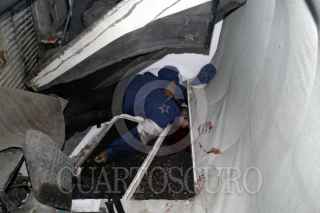 TEXCOCO EDO. DE MEX.-Cruz Piña López de 38 años, pierde la vida al momento de voltearse la camioneta de transporte público en la cual viajava, después de ser impactada por un trailer esto en el Km.25 de la carretera México-Texcoco. FOTO: SAÚL LÓPEZ/CUARTOSCURO.COM