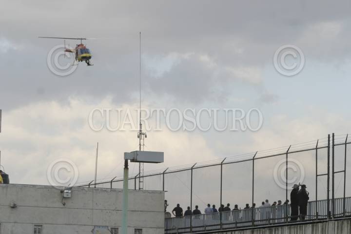 CD. NEZA EDO. DE MEX.- Reos del Penal Neza Bordo se amotinaron esta tarde. En el lugar elementos de la Agencia de Seguridad Estatal antimotines repelieron agresiones con gas lacrimogeno. En el lugar se escucharon balazos. FOTO: SAÚL LÓPEZ/CUARTOSCURO.COM