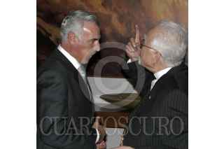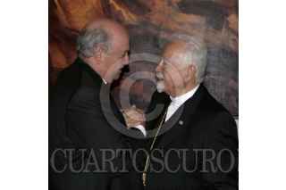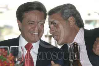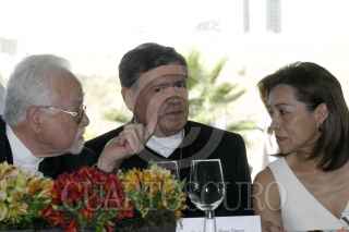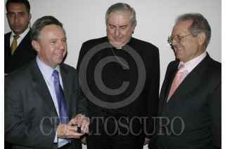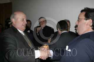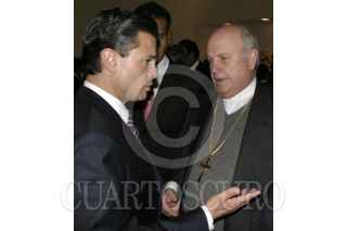 HUIXQUILUCAN, EDOMEX, 17ENERO2008.- Enrique Peña Nieto, Gobernador del Estado de México y Onesimo Cepeda, Obispo de Ecatepec, durante la celebración del cumpleaños de Antonio Chedrahui. FOTO: SAÚL LÓPEZ/CUARTOSCURO.COM