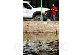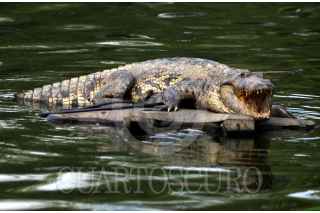 VILLAHERMOSA, TABASCO, 18ENERO2008.- Autoridades de la PROFEPA dieron a conocer este día el aseguramiento de varias pieles de cocodrilos que fueron localizadas en el aeropuerto local, sin embargo no aparecen en posesión de la delegación estatal de la PGR en donde se daría inicio a la correspondiente averiguación previa. En la imagen unos curiosos observan sobre la Laguna de la Ilusiones a este bello pero peligroso animal que esta en peligro de extinción. FOTO: MARCO POLO GUZMÁN HERNÁNDEZ/CUARTOSCURO.COM