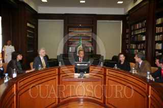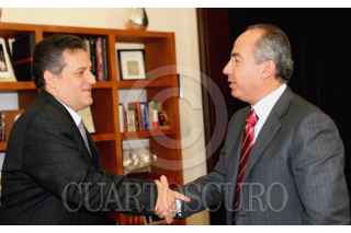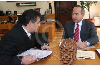 MEXICO D.F., 23ENERO2008.- Felipe Calderón Hinojosa, Presidente de México, sostuvo una reunión con el Andreas Schleicher, Director de la División de Indicadores y Análisis de la Organziación para la Cooperación y el Desarrollo Economico, en la residencia oficial de Los Pinos. FOTO: ALFREDO GUERRERO/CUARTOSCURO.COM