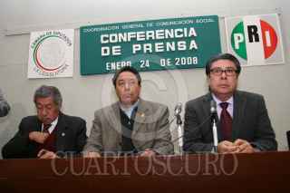 MÉXICO D.F. 24ENERO2008.-Los diputados del PRI Alfredo Ríos Cmarena, Hector Padilla y Samuel Aguilar, durante su conferencia de prensa al termino de la comparesencia de secretario de SAGARPA. FOTO: GUILLERMO PEREA/CUARTOSCURO.COM