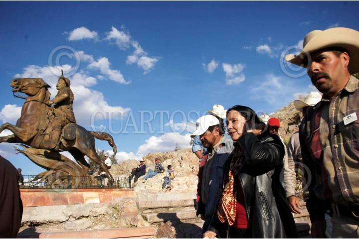 ZACATECAS, ZACATECAS, 24ENERO2008.- Llega a la capital la caravana de tractores conducidas por decenas de barzonitas provenientes de la frontera Cd Juarez, que se dirige a la ciudad de Mexico D.F, realizaron un mitin en el cerro de la bufa y donde los acompaño la gobernadora del estado Amalia Garcia Medina, donde se pronuncio a favor de la lucha que encabezan los campesinos en contra del TLC que entra en vigor este año. FOTO: GUILLERMO MORENO/CUARTOSCURO.COM