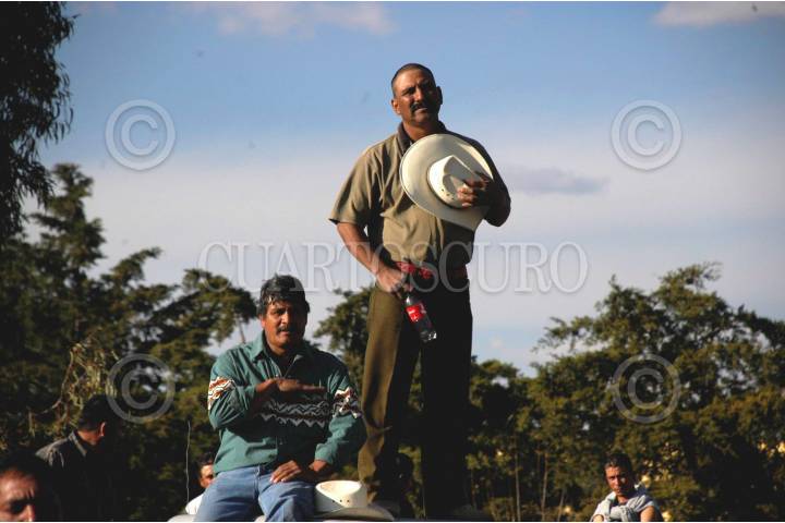 ZACATECAS, ZACATECAS, 24ENERO2008.- Llega a la capital la caravana de tractores conducidas por decenas de barzonitas provenientes de la frontera Cd Juarez, que se dirige a la ciudad de Mexico D.F, realizaron un mitin en el cerro de la bufa y donde los acompaño la gobernadora del estado Amalia Garcia Medina, donde se pronuncio a favor de la lucha que encabezan los campesinos en contra del TLC que entra en vigor este año. FOTO: GUILLERMO MORENO/CUARTOSCURO.COM