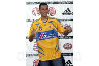 SAN NICOLAS DE LOS GARZA, NUEVO LEON 25ENERO2008.- El delantero Panameño Blas Perez, fué presentado como el nuevo refuerzo del club Tigres de la UANL, en rueda de prensa estuvo acompañado del presidente del equipo Enrique Borja y del Vice Presidente deportivo Sebastian Luri. Mañana por la tarde enfrentará su primer partido cuando los universitarios reciban a la Maquina del Cruz Azul en la Jornada 2 del torneo de clausura 08. FOTO: PEDRO KRISTIAN LOPEZ/CUARTOSCURO.COM
