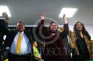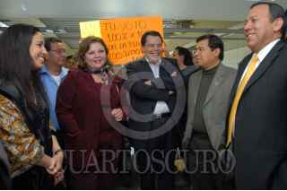 MÉXICO,D.F 25ENERO2008.- Ruth Zavaleta, presidenta de la mesa directiva de la Cámara de Diputados, Elena Tapia, el senador Rene Arce, el asambleista Victor Hugo Cirigo y Jesús Zambrano después de haberse registrado como candidatos a la presidencia y secretaría general del PRD del Distrito Federal. FOTO: IVAN MENDEZ/CUARTOSCURO.COM