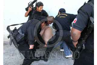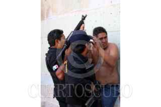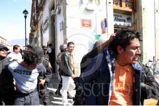 OAXACA, OAXACA, 25ENERO2008.- Rubén Marmolejo, alías "El Dragón, un porro supuestamente pagado por el Pulpo, quien es un camionero que lo contarto junto con otras cinco personas para evitar que secuestrarán o destruyerán autobuses del transporte público por parte de los estudiantes de la Facultad de Derecho y Ciencias Sociales de la UABJO, fueron detenidos por la policia, los universitarios realizarón una jornada de elecciones internas para elegir al nuevo director de la facultad. Al terminar el operativo la policia resguardo la instalaciones de la facultad. FOTO: MAX NUÑEZ/CUARTOSCURO.COM