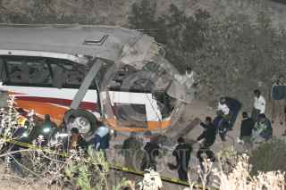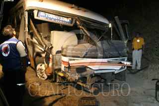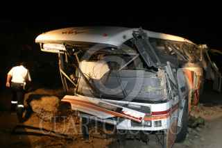 HUIXQUILUCAN. EDOMEX, 29ENERO2008.- 12 personas pierden la vida y una veintena de heridos fue el saldo que dejó esta noche la volcadura de un autobús en la Autopista Chamapa-Lechería, a la altura de Bosque Real. FOTO: SAÚL LÓPEZ/CUARTOSCURO.COM