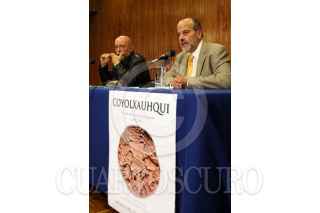 MÉXICO D.F. 30ENERO2007.-Eduardo Matos arqueologo, Coordinador del proyecto Templo Mayor y Carlos Javier González, Director del Museo del Templo Mayor, durante la conferencia donde se dieron a conocer los pormenores de los festejos del 30 aniversario del descubrimiento de la Coyolxauhqui. FOTO: GUILLERMO PEREA/CUARTOSCURO.COM