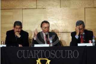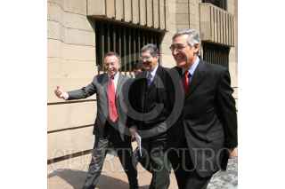 MÉXICO D.F. 30ENERO2008.-Guillermo Ortiz gobernador de Banco de México rindio su informe de labores del 2007, esto en las instalaciones de esta institución.En la imagen es acompañado por Roberto Cueto y Everardo Elizondo. FOTO: GUILLERMO PEREA/CUARTOSCURO.COM
