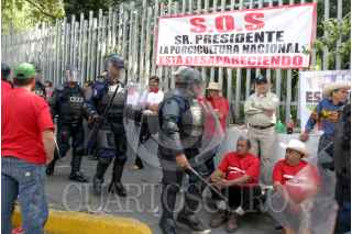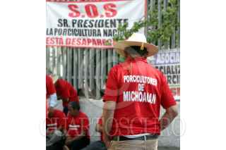 MÉXICO D.F., 30ENERO2008.- Porcicultores de los estados de Michoacán, Jalisco, entre otros, llegaron a la Secretaria de Economía para pedir programas de apoyo. FOTO: PEDRO MARRUFO/CUARTOSCURO.COM