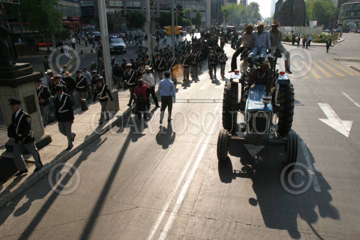 MÉXICO, D.F., 31ENERO2008.- Campesinos acompañados de sus tractores de varios estados del país participaron en mega marcha en contra de la entrada en vigor del último capítulo del Tratado de Libre Comercio con América del Norte en materia de productos del campo, como maíz y frijo. Ellos han señalado que este acuerdo comecial firmado hace diez años los pone en franca desventaja con los campesinos del país del norte. FOTO: MOISÉS PABLO/CUARTOSCURO.COM