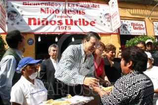 MÉXICO D.F., 02FEBRERO2008.- El jefe de gobierno del Distrito Federal Marcerlo Ebrard acompañado de su esposa Mariagna Prats repartieron tamales en la calle de talavera como parte del festejo del día de la Candelaria. FOTO: IVAN MENDEZ/CUARTOSCURO.COM