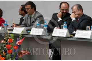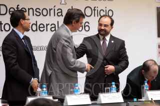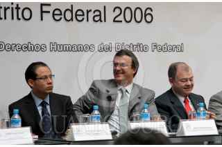 México D.F., a 7 de Febrero de 2008.- Sergio Miguel Cedillo, Marcelo Ebrard y Edgar Elías Azad, en el Informe Especial, sobre la defensoría de Oficio del Distrito Federal 2006. FOTO: VICTORIA VALTIERRA/CUARTOSCURO.COM