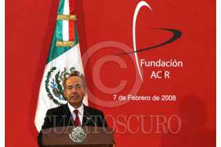 MÉXICO D.F. 06FEBRERO2008.- El presidente Felipe Calderón Hinojosa durante la presentación de la fundación ACIR, realizado en el Museo Nacional de Antropologia e Historia. FOTO: SAÚL LÓPEZ/CUARTOSCURO.COM