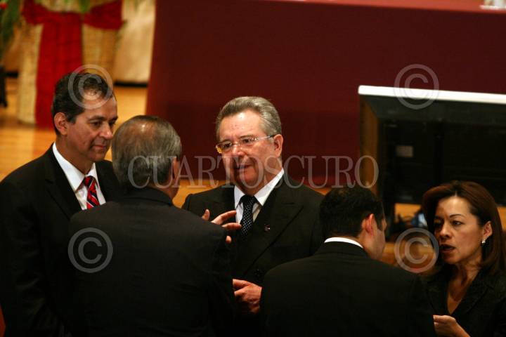 MÉXICO D.F. 06FEBRERO2008.- El empresario Francisco Aguirre conversa con el Secretario de Salud Jose Angel Cordoba Villalobos y el Secretario de la SEMARNAT Juan Rafael Elvira Quezada durante la presentación de la fundación ACIR. FOTO: SAÚL LÓPEZ/CUARTOSCURO.COM