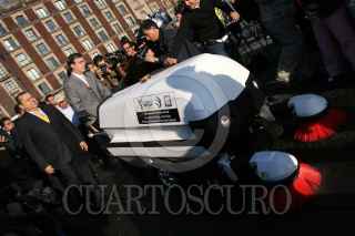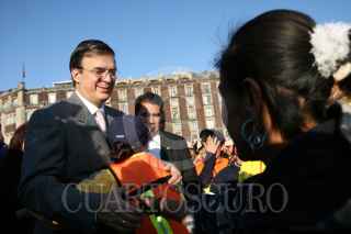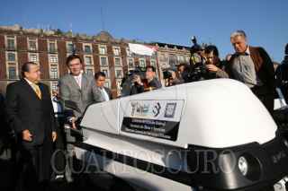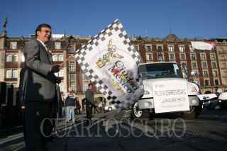 MÉXICO D.F. 08FEBRERO2008.-El jefe del gobierno capitalino Marcelo Ebrad Casaubon, acompañado de José Luis Teeran, Director de Servicios Urbanos, realizo el banderazo de salida a barredoras mecánias que serviran para la limpieza de las calles de la ciudad. FOTO: GUILLERMO PEREA/CUARTOSCURO.COM