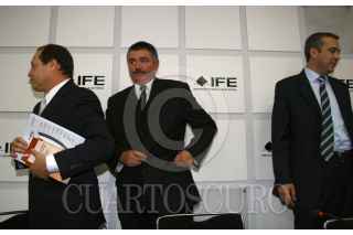 MÉXICO,D,F 08FEBRERO2008.- Marco Antonio Baños, Leonardo Zurita Consejero presidente del Instituto Federal Electoral, Benito Nacif Consejero Electoral desigando por la cámara de diputados durante conferencia de prensa ofrecida a los medios momentos después de haber tomado protesta. FOTO: SASHENKA GUTIERREZ/CUARTOSCURO.COM