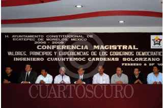 ECATEPEC DE MORELOS 08FEBRERO2008. Cuahutemoc Cárdenas Solorzano durante la conferencia magistral valores, principios y experiencias de los gobiernos democraticos. FOTO:/CUARTOSCURO.COM