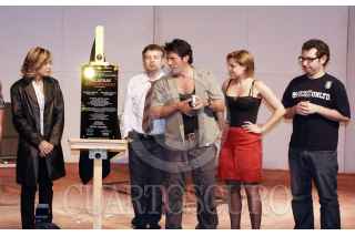 MÉXICO D.F., 09FEBRERO2008.- El grupo español Parchís ofrecieron una conferencia de prensa despues de haber develado esta noche la placa de las 100 representaciones de la obra de teatro Palabras Encadenadas. FOTO: RODOLFO ANGULO/CUARTOSCURO.COM