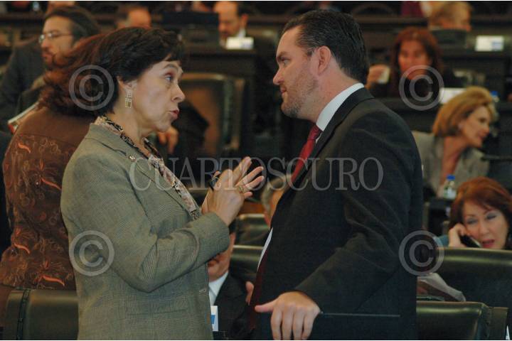 MÉXICO D.F., 14FEBRERO2008.- El senador del PRD Pablo Gomez de la pasa unas muestras de cajetillas de cigarro al senador Ricardo Monreal como muestra para la nueva ley anti tabaco durante la sesión ordinaria en el Senado de la República. FOTO: RODOLFO ANGULO/CUARTOSCURO.COM