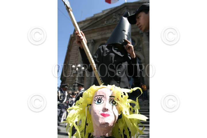MÉXICO, D.F., 15FEBRERO2008.- Vecinos de la delegación Miguel Hidalgo, protestaron por la falta de apoyos a vivienda, mientras la delegada de la de marcación comparecia en el interior del recinto. FOTO: MOISÉS PABLO/CUARTOSCURO.COM