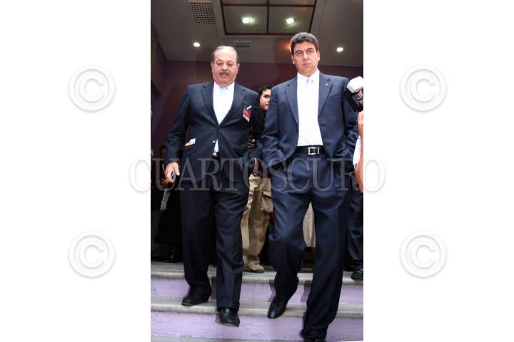 MÉXICO,D,F 15FEREBRO2008.- El empresario Carlos Slim y Arturo Elias Ayub salen de la ceremonia del Premio México de ciencia y Tecnología, realizada en la residencia oficial de los pinos FOTO: SASHENKA GUTIERREZ/CUARTOSCURO.COM
