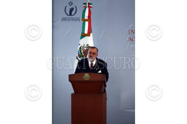MÉXICO,D,F 15FEREBRO2008.- José Luis Soberanes Presidente de la CNDH el Presidente de los Estados Unidos Mexicanos Felipe Calderon Hinojosa durante el informe de actividades del ombusdman en las instalaciones de la CNDH al sur de la ciudad de México FOTO: SASHENKA GUTIERREZ/CUARTOSCURO.COM