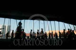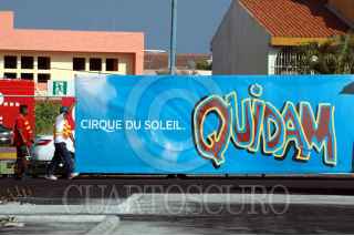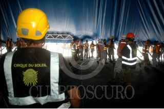 VERACRUZ, VERACRUZ. 15FEBRERO2008.- Por primera vez llega con sus setecientas cincuenta toneladas de equipo el espectáculo del Cirque Du Soleil, a Veracruz, presentando QUIDAM con diez fechas a partir del veintisiete de Febrero. El dÌa de hoy quedo instalada la gran carpa donde trabajaron mas de cien hombres para su colocación. FOTO: JOSÉ CANDELARIO/CUARTOSCURO.COM