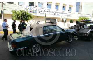 MEXICO, D.F., 20FEBRERO2008.- Un automóvil Phantom en el que se presume que "El Pipen" y Tania Vázquez subieron para recibir el artefacto explosivo que estalló cerca de la SSP-DF, fue localizado en la delegación Venustiano Carranza y trasladado a las oficinas de la PGJDF. FOTO: IVÁN MENDEZ/CUARTOSCURO.COM