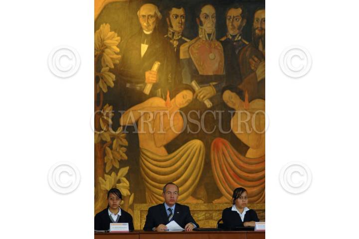 MÉXICO, D.F., 21FEBRERO2008.- El presidente Felipe Calderón durante su participación en el evento de la primera jornada nacional por la mejora integral de la educación media superior que se realizo en salón Hispanoamericano de la Secretaria de Educación Pública. FOTO: RODOLFO ANGULO/CUARTOSCURO.COM