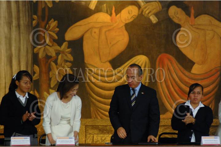 MÉXICO, D.F., 21FEBRERO2008.- El presidente Felipe Calderón durante su participación en el evento de la primera jornada nacional por la mejora integral de la educación media superior que se realizo en salón Hispanoamericano de la Secretaria de Educación Pública. FOTO: RODOLFO ANGULO/CUARTOSCURO.COM